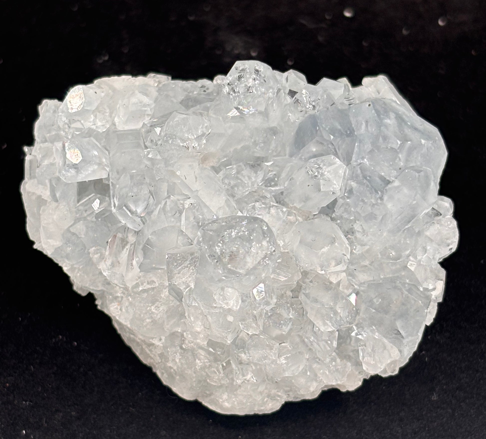 Por su fragilidad, es importante mantener la celestita lejos del agua, del sol directo y de objetos que puedan rayarla. Límpiala con un paño seco y suave, y recárgala con la luz de la luna o sobre una drusa de cuarzo.