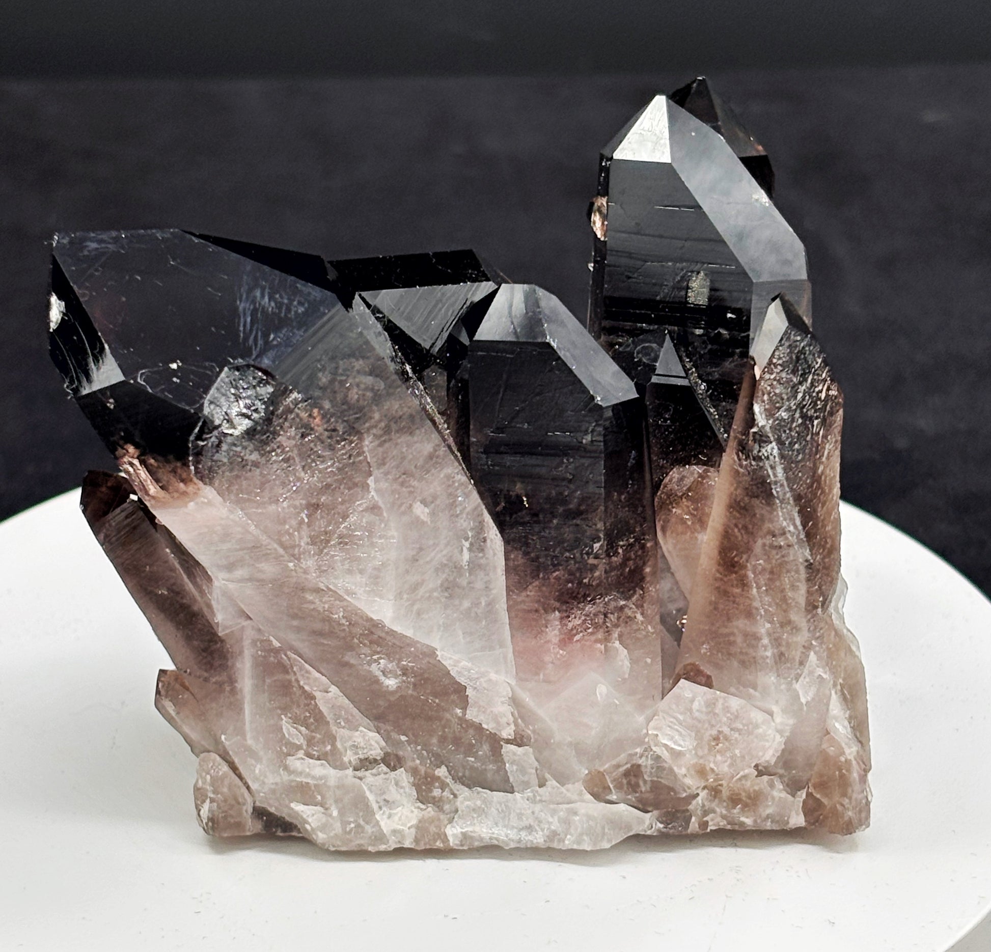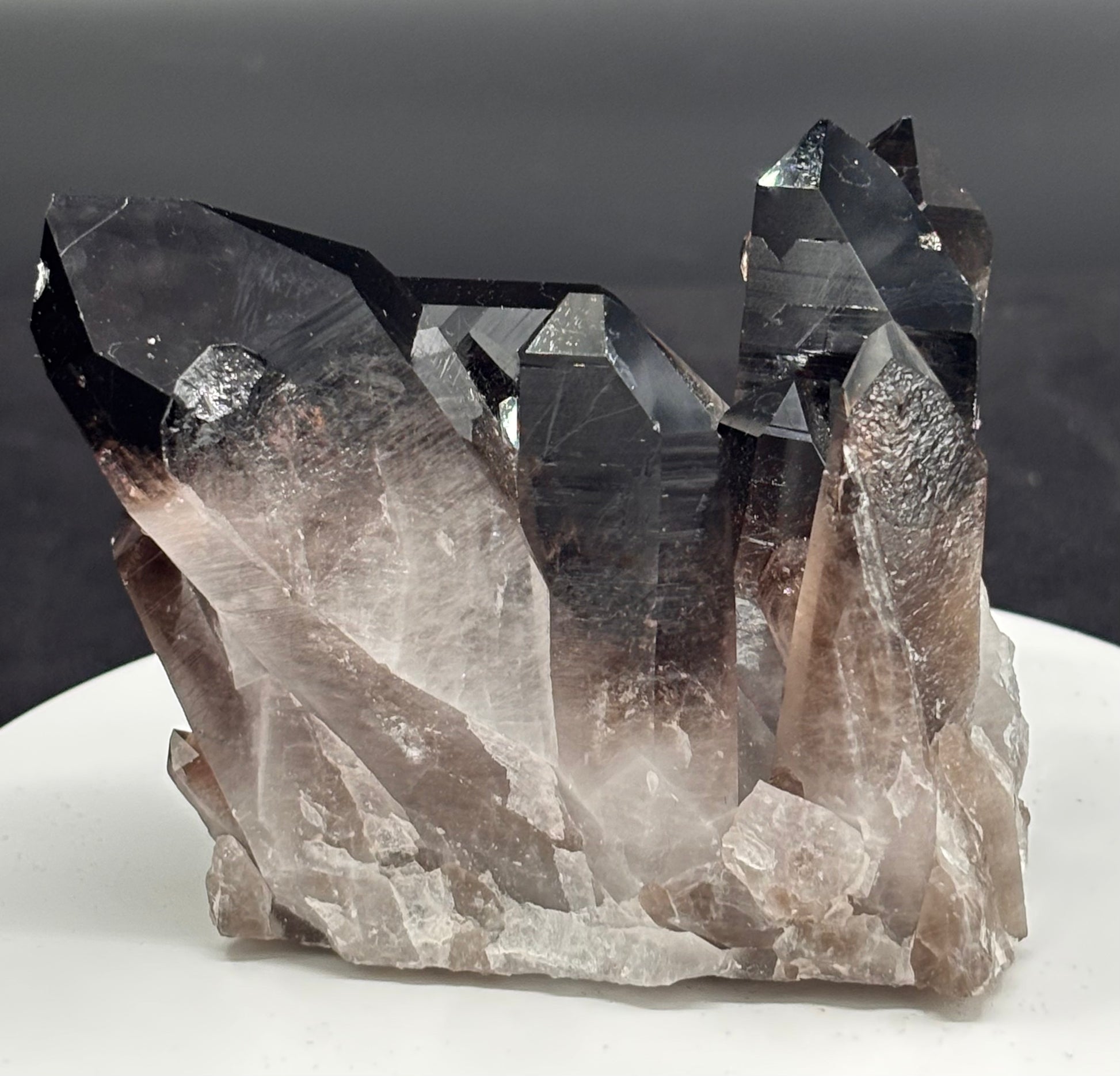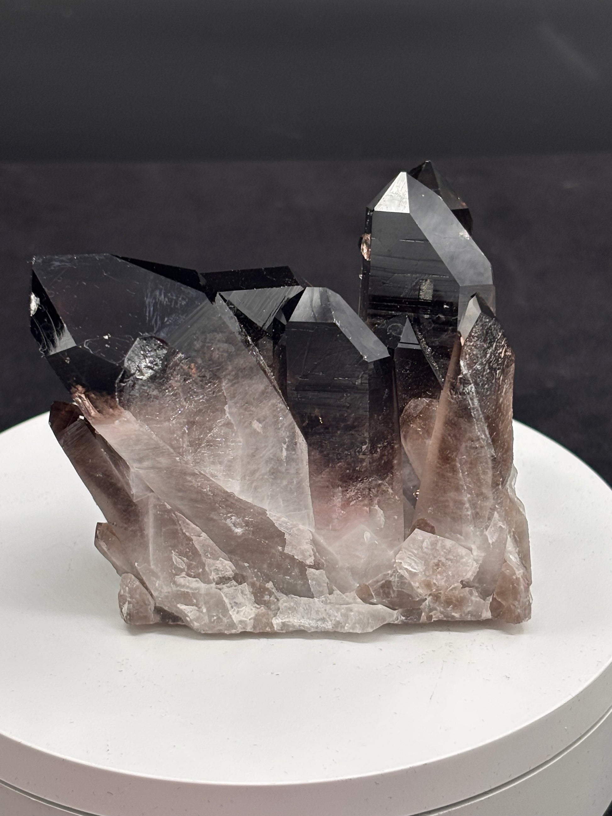 El cuarzo ahumado es una variedad de cuarzo con un tono que va del gris traslúcido al marrón oscuro o casi negro. Su color se debe a la exposición natural a la radiación en la Tierra, que afecta al contenido de aluminio dentro del cristal.