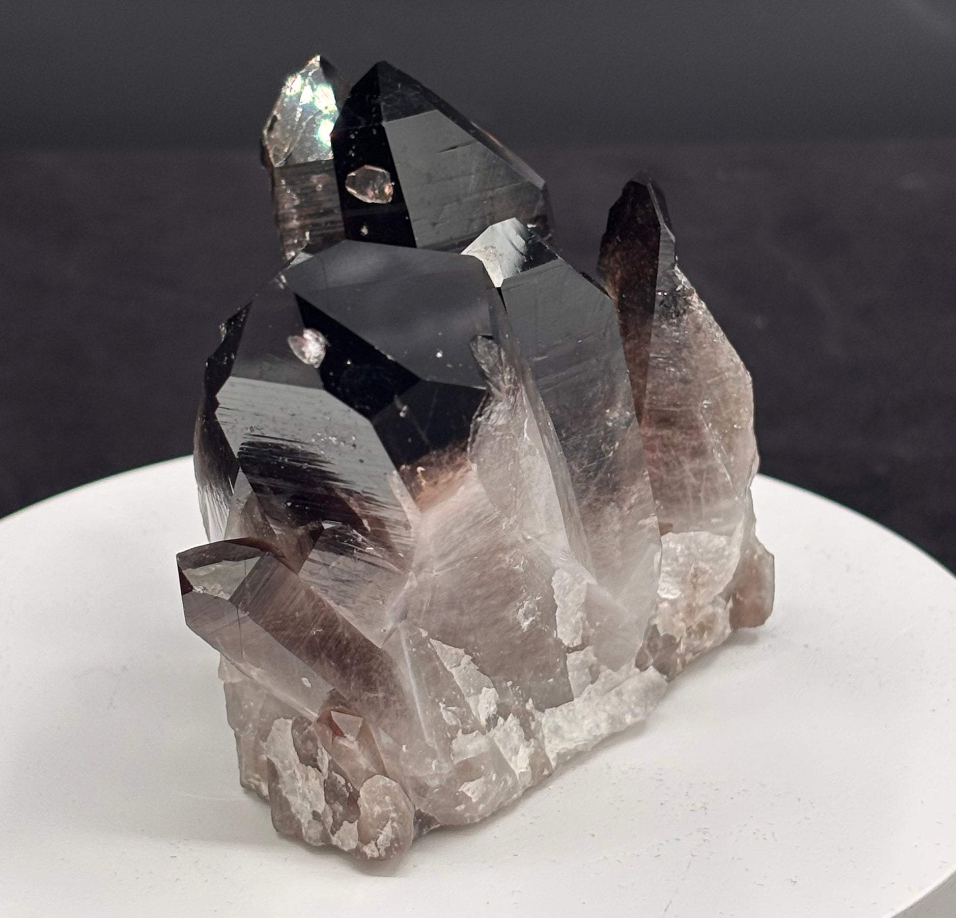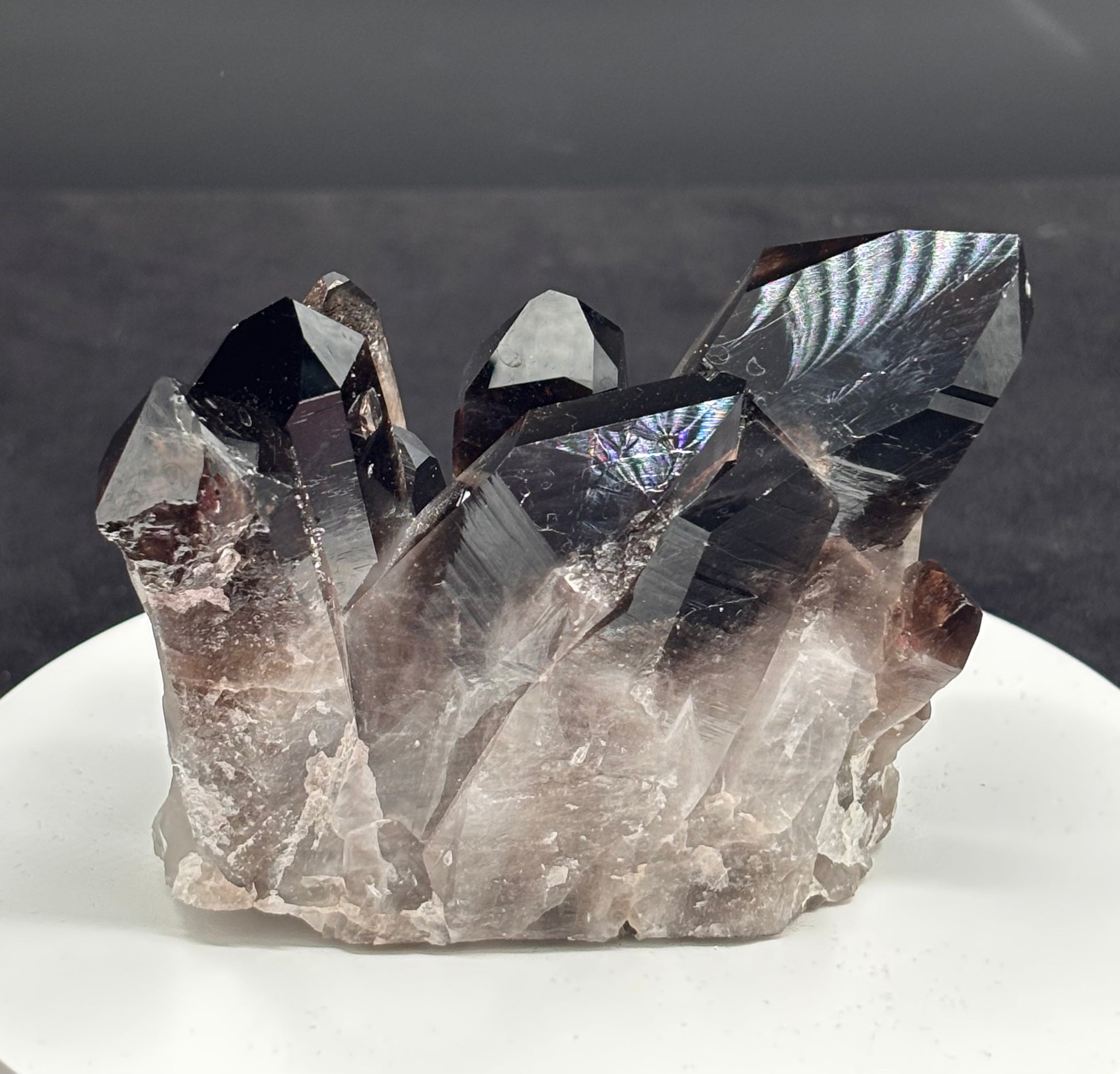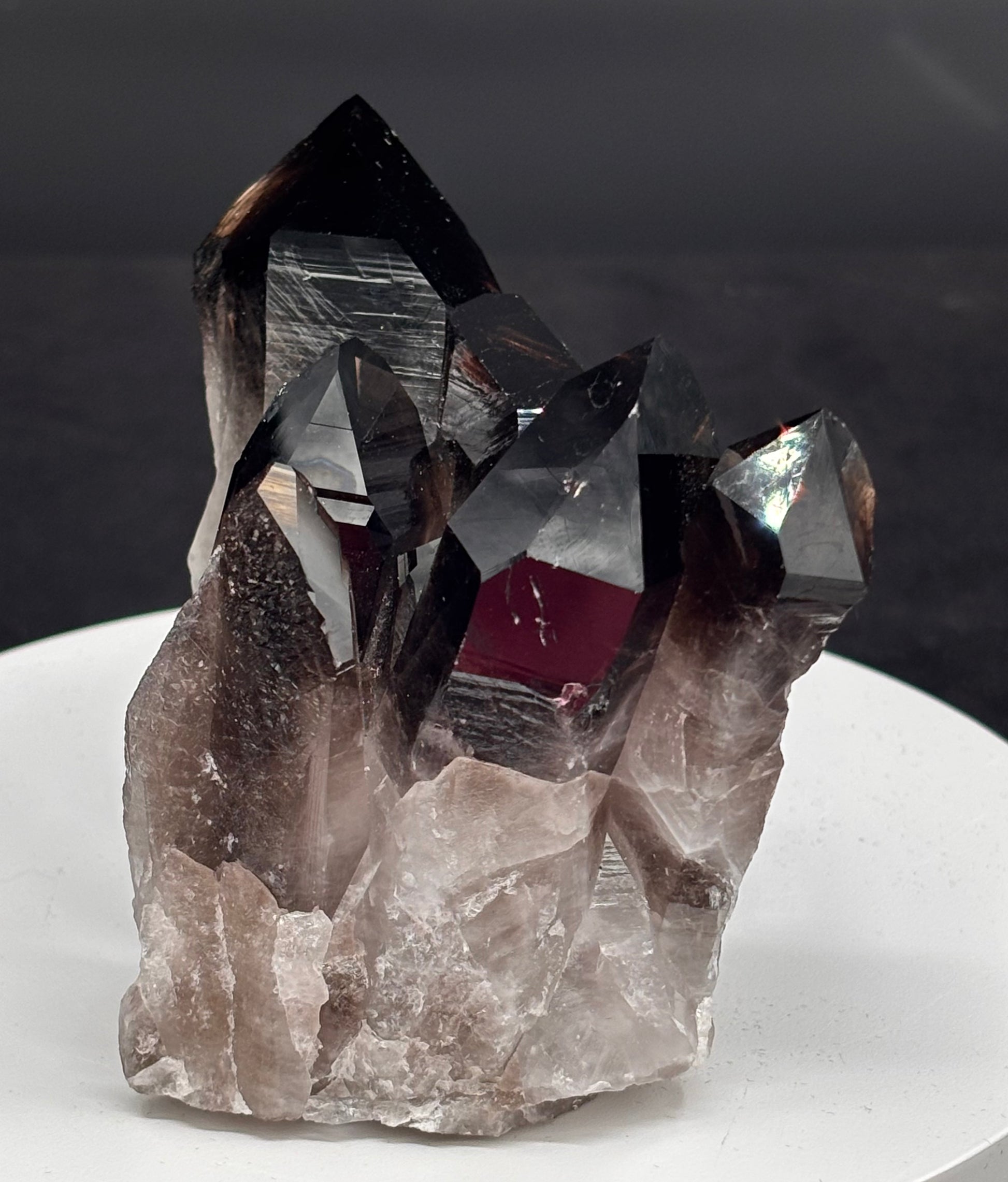El cuarzo ahumado es una variedad de cuarzo con un tono que va del gris traslúcido al marrón oscuro o casi negro. Su color se debe a la exposición natural a la radiación en la Tierra, que afecta al contenido de aluminio dentro del cristal.