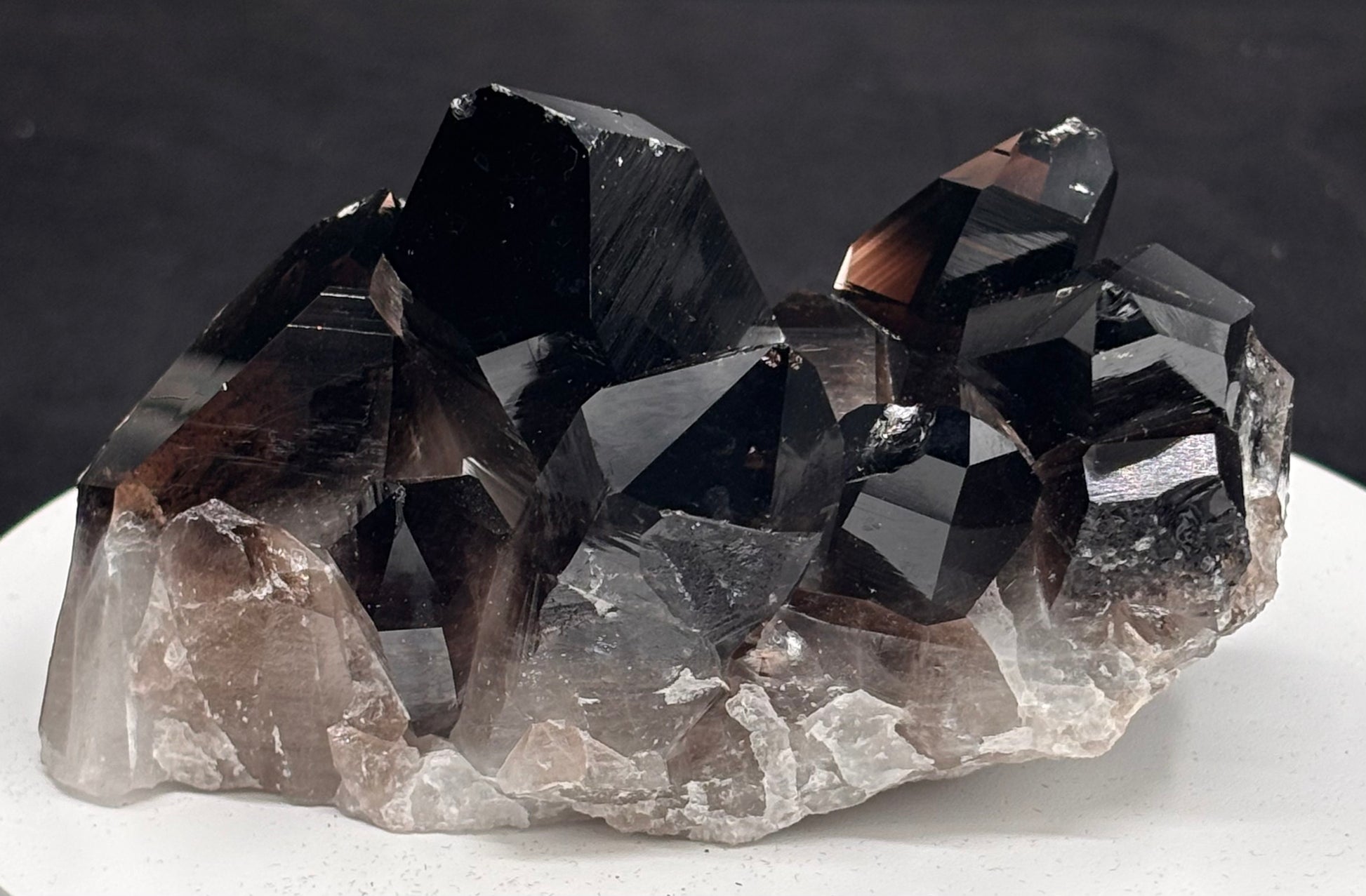 El cuarzo ahumado es una variedad de cuarzo con un tono que va del gris traslúcido al marrón oscuro o casi negro. Su color se debe a la exposición natural a la radiación en la Tierra, que afecta al contenido de aluminio dentro del cristal.