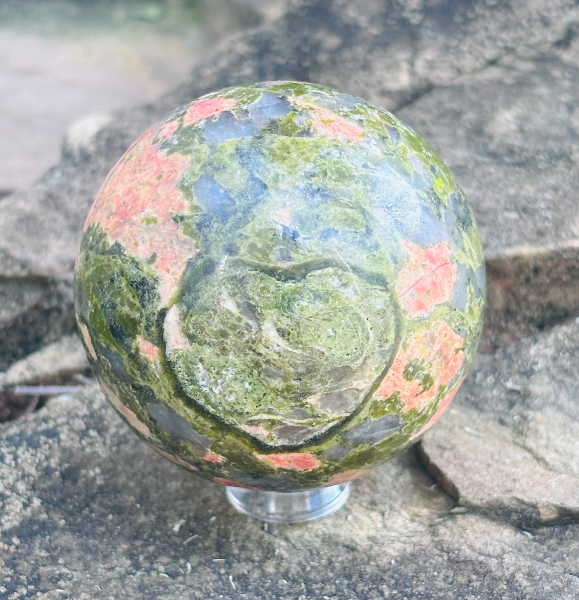 El diámetro de este hermosa esfera es de 5cm y su peso es de 191 gm.