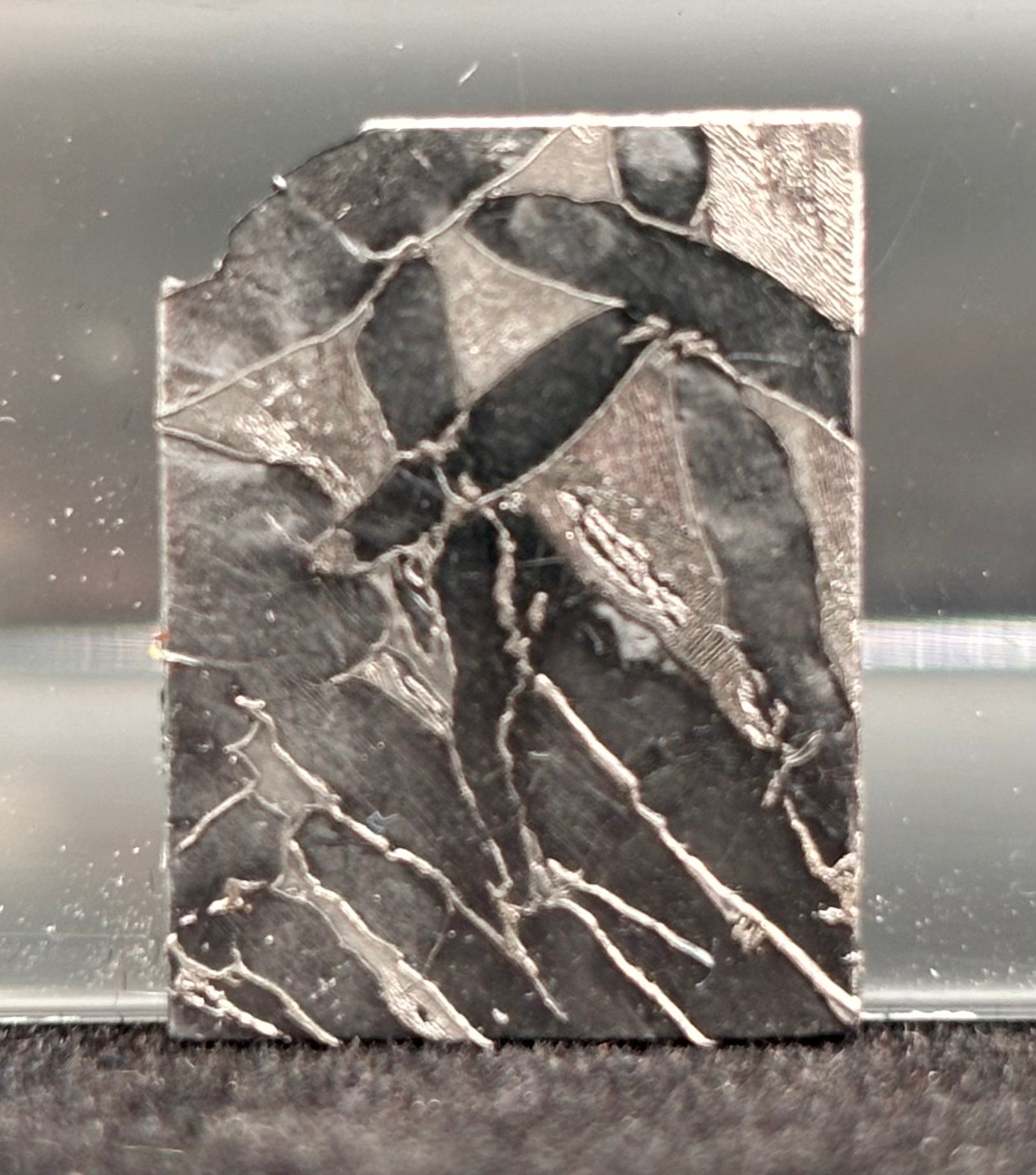 3. Patrones de Widmanstätten – La aleación de hierro y níquel exhibe un patrón geométrico característico cuando se corta y se trata con ácido, lo que demuestra su origen extraterrestre.